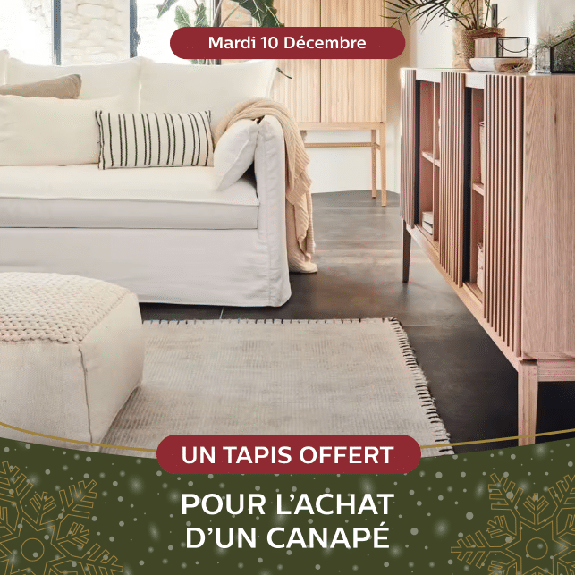 *Pour l'achat d'un canapé d'une valeur minimum de 1500€, un tapis d'une valeur maximale de 150€ offert.