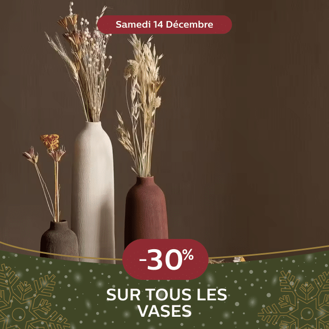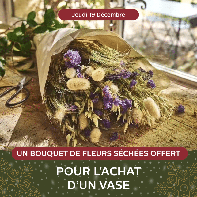 *Pour l'achat d'un vase d'une valeur minimum de 50€. Un bouquet de fleurs séchées d'une valeur maximale de 15€.