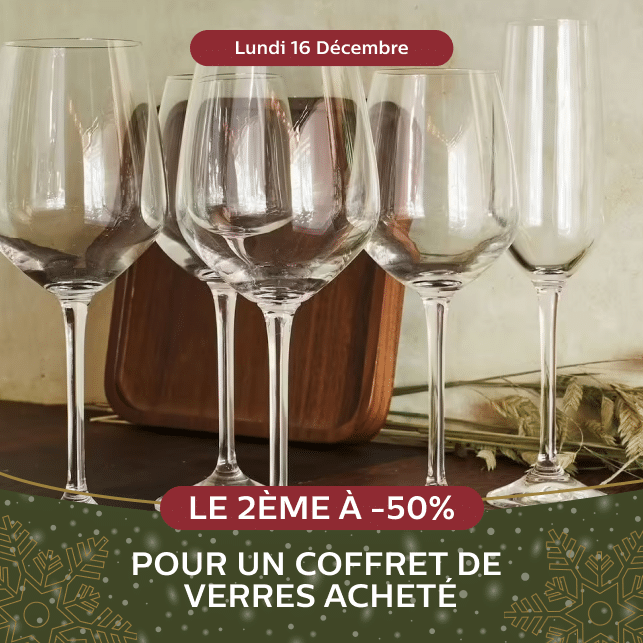 *Offre valable sur les coffrets de verres, remise de -50% appliquée sur le coffret le moins cher des deux.
