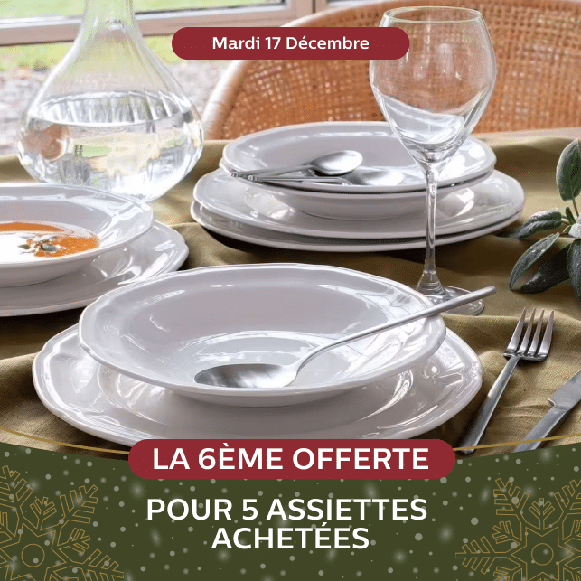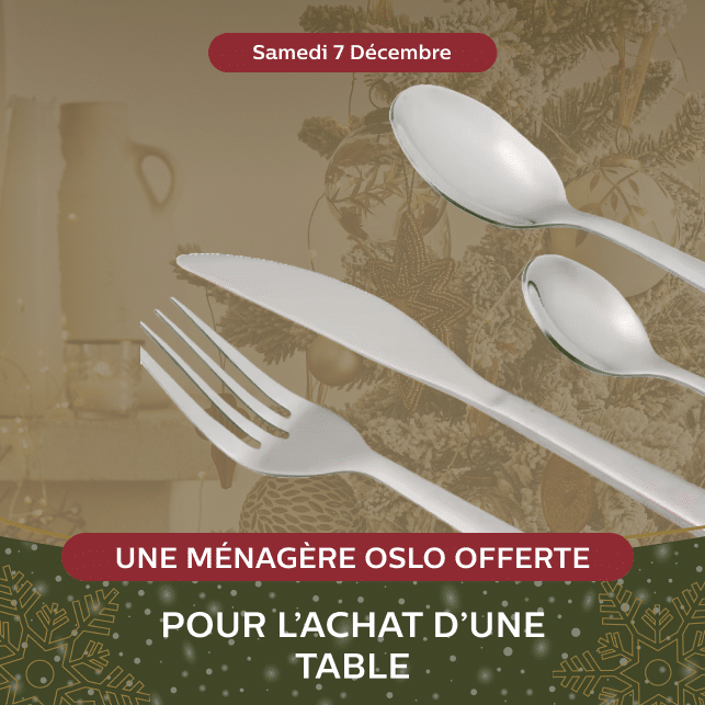 *Offre valable pour l'achat d'une table d'une valeur minimum de 400€. Ménagère OSLO 24 pièces en inox brillant (réf 27869307) d'une valeur de 30€.