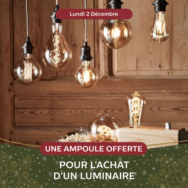 *Une ampoule offerte pour l'achat d'un luminaire d'une valeur minimum de 100€.