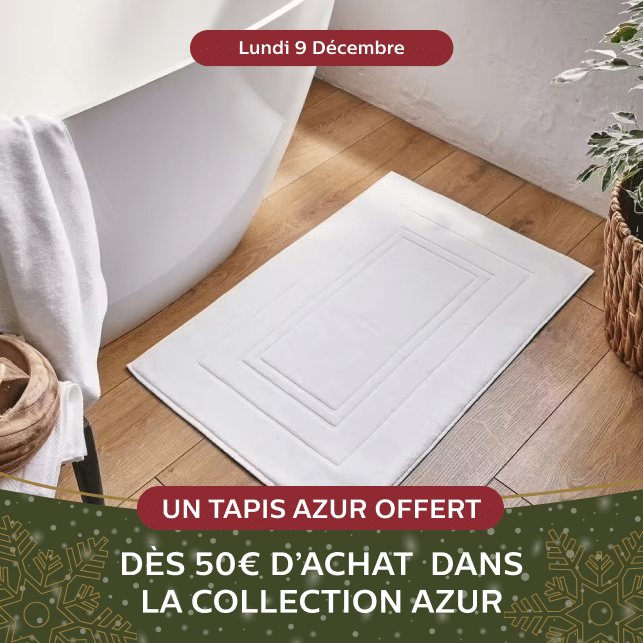 *Tapis Azur en coton 50x80cm d'une valeur de 14€, différents coloris disponibles. Offre valable hors promotions en cours.